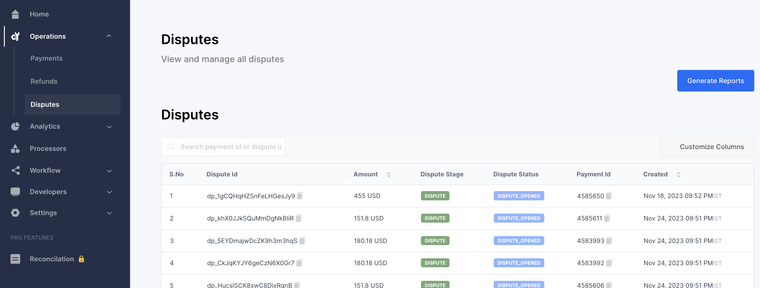 Each processor has their own standards or processes around how they notify about disputes and how merchants can challenge/accept them and thus it becomes cumbersome for a merchant using multiple processors to manage disputes across different processors on their own.