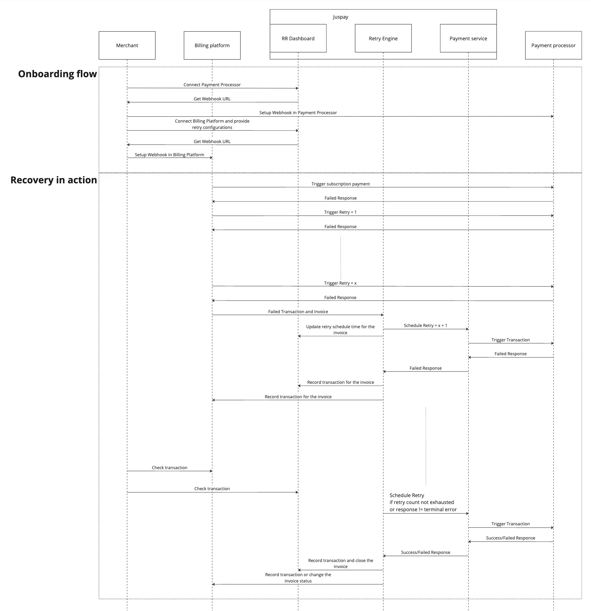 Revenue Recovery module of Juspay Hyperswitch is designed to act as a failsafe for recurring payments. It seamlessly integrates with merchants' existing subscription management systems and performs intelligent retries to recover failed transactions. With minimal effort from merchants, Revenue Recovery delivers an uplift in authorization rates, helping businesses reduce churn, recover lost revenue, and maximize customer lifetime value.